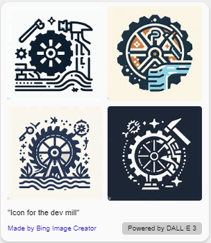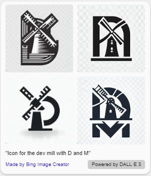 There appears to be a couple of themes there, windmills and round images. My favorite was was attempt 8 (the featured image above) which seemed the most unique, but my wife suggested that it kind of looked like the Third Reich, and given that The Dev Mill sounds like the devil, we decided it gave a bad impression.